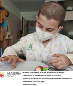 Gracias a proyectos como “Sensibilización, formación y seguimiento del voluntariado en Almería de la Asociación Argar” financiado por el Excmo. Ayuntamiento de Almería, tenemos un gran recurso humano y de calidad, como es el voluntariado de la Asociación, y con el que podemos realizar diferentes talleres organizados y ejecutados por los mismos voluntarios de la Asociación Argar .