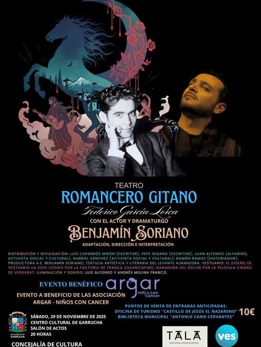 Os animamos a asistir a esta gran obra de teatro «Romancero Gitano» de D. Federico García Lorca, contando con la adaptación, dirección e interpretación de Benjamín Soriano entre otros. ![]()