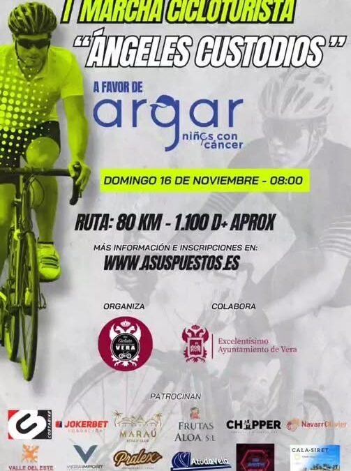 Os animamos a participar en la «I MARCHA CICLOTURISTA, ÁNGELES CUSTODIOS», una gran jornada de deporte con fines benéficos a favor de la Asoc. De Niños con Cáncer, Argar Almería